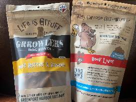 One lucky dog will be barking thanks at this basket of treats donated by Kim Loper and Andrew LoMonaco, the owners of Harbor Pet in Greenport. and Montauk. They bundled a stash of their favorite plush goodies, a North Fork dog leash, 4 bags of flavored LIfe is Grruff Growler bones proudly hand made in Greenport from local products including Greenport Harbor Brewing Co healthy spent brewer's grains-- barley, rye, wheat and oat flakes--which are superior for doggie diets, plus a $50 Harbor Pets gift certificate are tucked into a useful utility basket, ready to take home and enjoy.