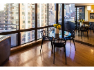 has floor-to-ceiling windows that offer beautiful city views