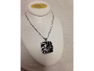 Add this beautiful sterling silver/black onyx necklace to your jewelry today. The cushion shaped design has 13 .10 CT total weight of round diamonds and 1 23x23 MM cushion onyx. Donated by the Diamond Room and Coyote Sports Properties