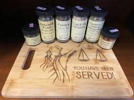 Spices and a Cutting Board