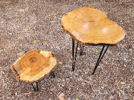 After these trees died at homes in Arlington, Treehugger Tree Service removed the trees and Urban Tree Merchants reclaimed the log. UTM milled, dried, planed, sealed, and finished these cross-section (circle/cookie) slabs into beautiful, one-of-a-kind end tables.