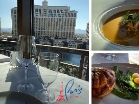 Set the scene for a memorable evening at one of the most notably romantic, fine dining spots in Las Vegas. Floor-to-ceiling windows showcase Eiffel Tower's stunning surroundings and neighboring water show. Your Eiffel Tower Restaurant experience is intended to evoke the same amorous feeling of traveling to the Paris, France landmark. The restaurant sits more than 100 feet above the bustling action on the Strip and is located one story under the Eiffel Tower Experience deck.