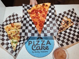 Pizza Cake by Chef Buddy Valastro, at Harrah's in Las Vegas serves as the first location of the new, fast-casual concept created by Cake Boss star Buddy Valastro. Designed to recreate the typical New Jersey/New York-style pizzeria with elements of street art, old school photos, Buddy's personal playlist, classic furnishings, and more. PizzaCake features the Las Vegas Strip's first ever Cake ATM, equipped with slices from Buddy and his famiglia's famous Carlo's Bakery.