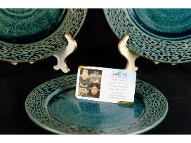13 plates handmade "Especially For You" by Eirene Burnette and signed on the bottom. 1 Approx. 7 3/4"- 1 bluish green, 1 approx. 9 7/8" greenish brown, 1 approx. 10 1/2".