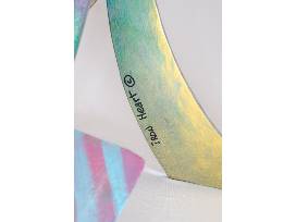 1"Iron Hearts" is a welded sculpture, painted with automotive paint with an automotive clear coat over welded metals. Can be used indoors or outdoors. Signed and dated.