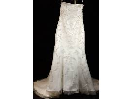 1Pre owned Casablanca style 1978 elegant gown. Shades of white with embroidery, beads & rhinestones. Size 14
