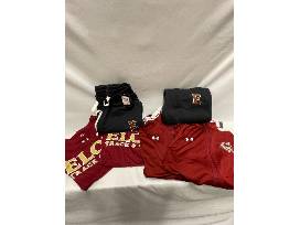 The pack includes two zip-up jackets, two pairs of sweatpants, one long-sleeve and one short-sleeve t-shirt. All items are sized Women's small.