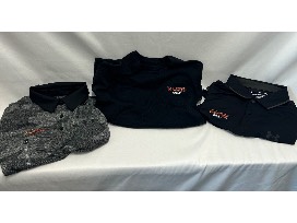 Package includes Adult Small Black Elon UA Intelliknit Crewneck, Adult Small Black Elon UA Iso-Chill Polo (UPF 50), and Adult Small Black and Grey Elon UA Playoff Camo performance polo (UPF 40)