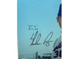 This signed print commemorates Nolan Ryan's 1st strikeout. Measuring 14.5" x 17.5".