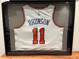 This is an authentic framed signed Knicks jersey by Jalen Brunson, which includes a certificate of authenticity. Framed size measures 31"x25"