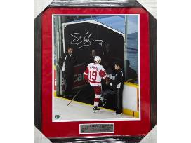 It has been framed matting and measures 23 x 28". Yzerman played 22 years with the Red Wings most as captain and is second in nearly every offensive category to the great Gordie Howe. Yzerman won Stanley cups with the Red Wings as captain in 1997 1998 and 2002.