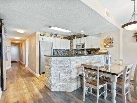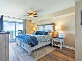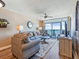 This oceanfront condo offers Free WiFi and 4TVs all Flat-screens including a 55 inch smart TV in the living room, and smart TVs in all bedrooms, a DVD player in the living room. Kitchen is fully equipped and includes, microwave, and coffee maker. The kitchen cabinets have been refaced and all mattresses and box springs have been replaced as of November 2021. There is a full size washer and dryer in a separate closet. This condo features ceiling fans in all 3 bedrooms and the living room. There is an electric fireplace that is sure to please the winter tenant. The condo feature all new living and dining room furniture including a new sofa. new tile backsplash and granite counter tops in the kitchen. All new stainless appliances plus new Luxury Vinyl Plank flooring. EVERYTHING in the condo has been updated and replaced.