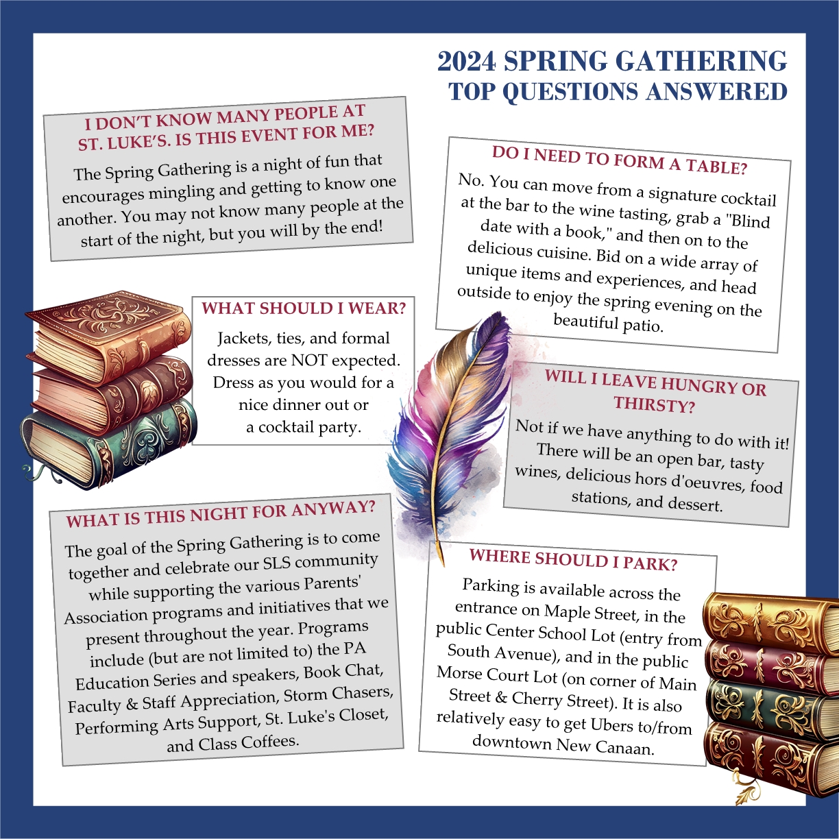 Welcome to the St. Luke's School Parents' Association's 2024 Spring Gathering - our signature event for parents, guardians, faculty, and staff! This year we will be transforming the NEW New Canaan Public Library's event space for a legendary night with our fabulous community!