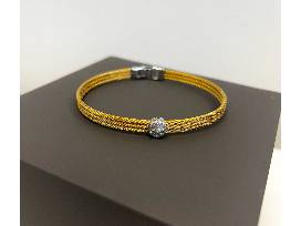 Discover the epitome of elegance and sophistication with this exquisite Alur bangle bracelet, a timeless treasure that effortlessly embodies the essence of luxury. Crafted with meticulous attention to detail, this 18-karat white gold and yellow gold bangle transcends the boundaries of traditional jewelry, offering a seamless fusion of modern aesthetics and classic charm.