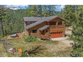 Stay in a custom-built log cabin on 4.5 acres on a mountain peak with complete privacy. Relax in the great room, the patio, on the deck, or in the hot tub while enjoying the spectacular views. The house has two bedrooms each with a king bed, one bedroom with a queen bed, and a room with bunk beds and cot. The property is approximately 30 minutes from Boise's city center.