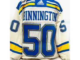 Signed jersey by St. Louis Blues goalie, Jordan Binnington