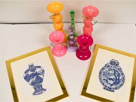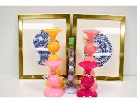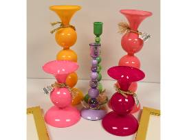 6.5" Sugar Plum Pillar Candle Holder Hot Pink