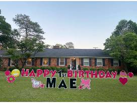 Custom yard signing from Columbia Yard Card. Arrangement will need to be ordered a month in advance.