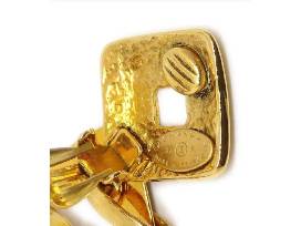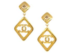 Vintage Chanel CC 24K Gold Diamond Shape Dangle Drop Clip Earrings