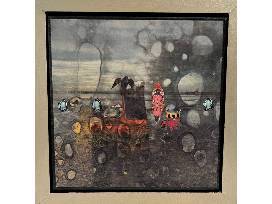 Medium: Oil and collage on canvas (framed) - National Geographic pages included as background