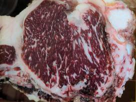 The serious Ranchers will love this Boxy shaped moderate framed powerhouse of a bull for the added muscle shape, volume and dimension. The carcass pictures here are both from a paternal half brother to 55J, and the ample marbling and added rib-eye size is what the industry is looking for. 55J scored a 9 out of 10 on his DNA Tenderness Score.