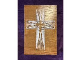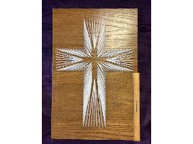 This beautiful String Cross Artwork was made and donated by Nancy Buettner of Wapakoneta.