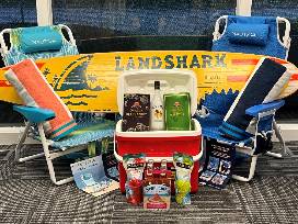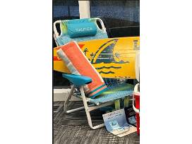 - Two Nautica Beach Chairs with insulated cooler bag, double mesh cup holder, 5 position lay flat option and padded backpack straps.