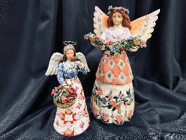 Embrace the beauty of gratitude and the joy of simple pleasures with this delightful duo of Jim Shore angels.