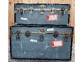 Step into the past with these two exquisite Vintage Metal Trunks, each a treasure trove of nostalgia and mystery!
