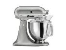 KitchenAid Artisan Stand Mixer in silver. Planetary action allows attachments to spin independently while making continual rotations around the bowl for continual mixing. Ten speeds range from very slow stirring to very high beating. Head tilts for easy removal of bowl and beaters. 5-qt. stainless steel bowl locks into base. Includes flat beater, dough hook, wire whip, and pouring shield.
