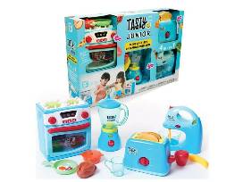 Give budding chefs all the inspiration they could wish for in the kitchen! This Tasty Jr. Chef set includes an oven, toaster, blender, and mixer along with pretend food that will get your kids cooking in no time.