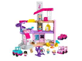 Toddlers can explore the iconic Barbie home, sized just right for their little hands and packed with toddler-friendly pretend play, with the Barbie Little DreamHouse interactive playset by Little People. Featuring 3 floors of play, this playhouse is loaded with hands-on fun, including a moving elevator, rotating clothes-closet, a light-up pool with slide, and 4 activation points for kids to press for fun lights, music, and realistic sounds.