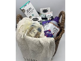 Parlor Hair Salon pulled out ALL THE STOPS with this amazingly aromatic basket of Zum experiences! Included in this 12.5" tall handcrafted wicker basket is a gorgeous ivory throw blanket and the following: