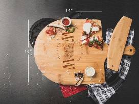 This custom pizza peel is made from natural bamboo! It is easy to wash and makes the perfect pizza gift.