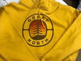 Hoodie is size large, but can be exchanged at the Brainerd Lakes Welcome Center on 371 south of Brainerd.