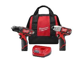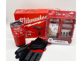Package Includes the Milwaukee 2-Tool Combo Kit (3/8" Drill/Driver, 1/4" Hex Impact Driver, batteries, charger and contractor bag), a 50 piece Drill and Drive Set, Performance Work Gloves and a Packout Tumbler.