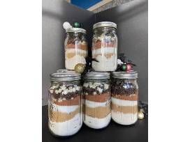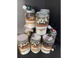 12 Homemade Christmas Jars filled with Brownie mix. Perfect for stocking stuffers, teacher gifts, hostess gifts and more! Ready to give.