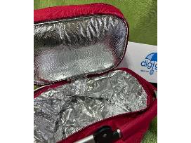 Insulated Picnic Basket with Top Pocket that has a Blanket with Plastic on one side for Sand or Grass. Comes with embroidery on bag and blanket.