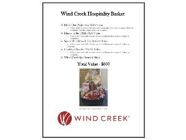 One Night Stay, Dinner at the Fire, Spa at Wind Creek Credit, Cooking Class for 2 and Wind Creek Spa items and Swag