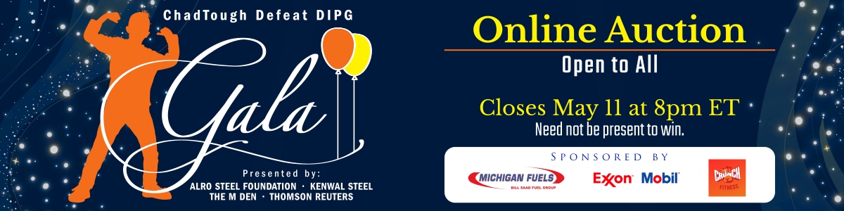 Thank you for participating in the 2024 ChadTough Gala Online Auction! Your purchases and donations will help us fund desperately needed research to help cure pediatric brain cancer, particularly the most deadly type - DIPG.