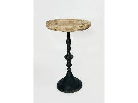 This accent table effortlessly blends the antique metal base with wood table top.