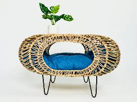 Decorate your home with your feline friend in mind. This oval woven coffee table gives modern vibes while providing a comfy space for your furry friend to hang out.