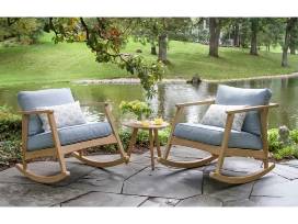 These rockers merge the timeless elegance of eucalyptus wood with the serene comfort of ocean-inspired hues.