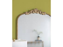 The mirror is custom inlaid glass surrounded by a gold solid iron frame.