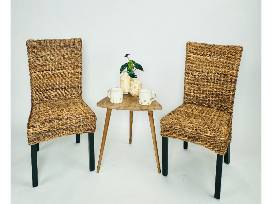 Introduce a touch of texture to your dining room with this set of two woven chairs. The intricate weave provides a rustic yet refined aesthetic, perfect for creating a warm and inviting dining experience. Paired with sleek, dark legs for a contemporary contrast, these chairs offer both comfort and style to any dining setting.