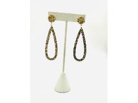 A pair of large dangle earrings in a teardrop form, adorned with gold rhinestone crystals, exuding elegance.
