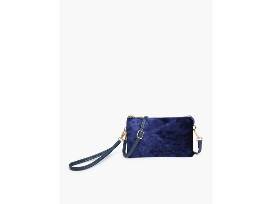 This velvet crossbody/clutch has two major compartments with one middle zipper pocket and a top zipper closure. Inside are two slip pockets and six cardholders. Wear it as a crossbody or use it as a clutch! Includes a detachable wristlet strap and an adjustable shoulder strap. Made of velvet material.