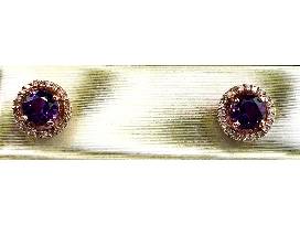 10K Rose Gold Amethyst Stud Earrings with Diamond Halo and Friction Post and backs.