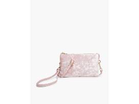 This velvet crossbody/clutch has two major compartments with one middle zipper pocket and a top zipper closure. Inside are two slip pockets and six cardholders. Wear it as a crossbody or use it as a clutch! Includes a detachable wristlet strap and an adjustable shoulder strap. Made of velvet material.