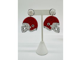 Show off your team spirit with these playful red beaded football helmet earrings. The perfect accessory for game day or to showcase your love for the sport, these earrings combine style and fandom in a unique and eye-catching way.